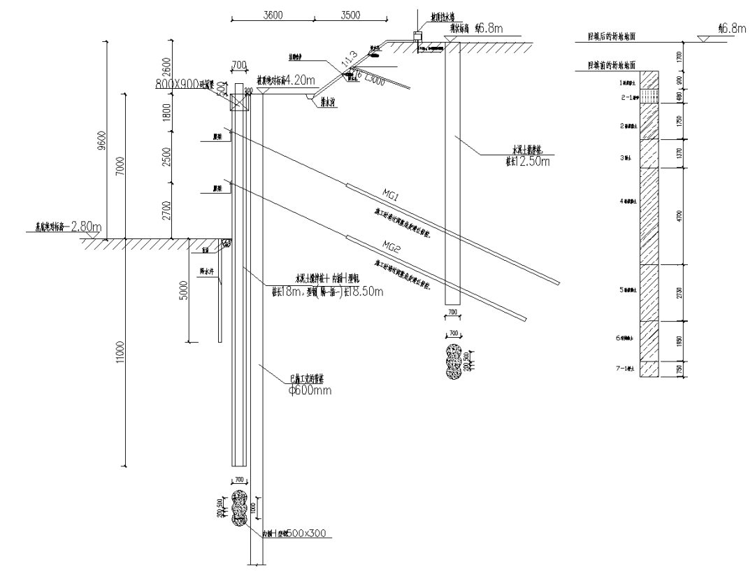 圖:根據(jù)現(xiàn)場實際條件圍護(hù)方案比選確定SMW工法樁+預(yù)應(yīng)力錨索方案